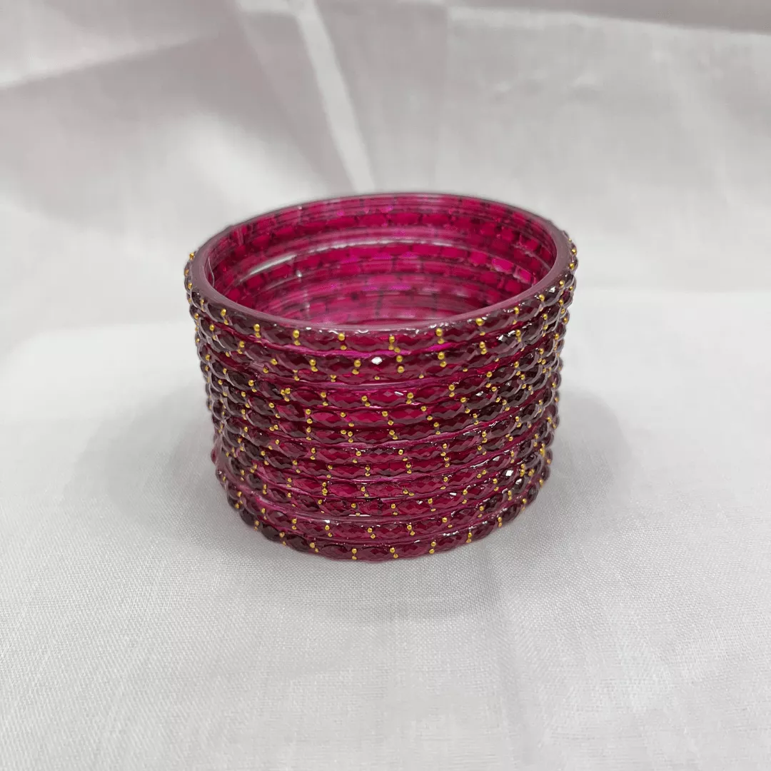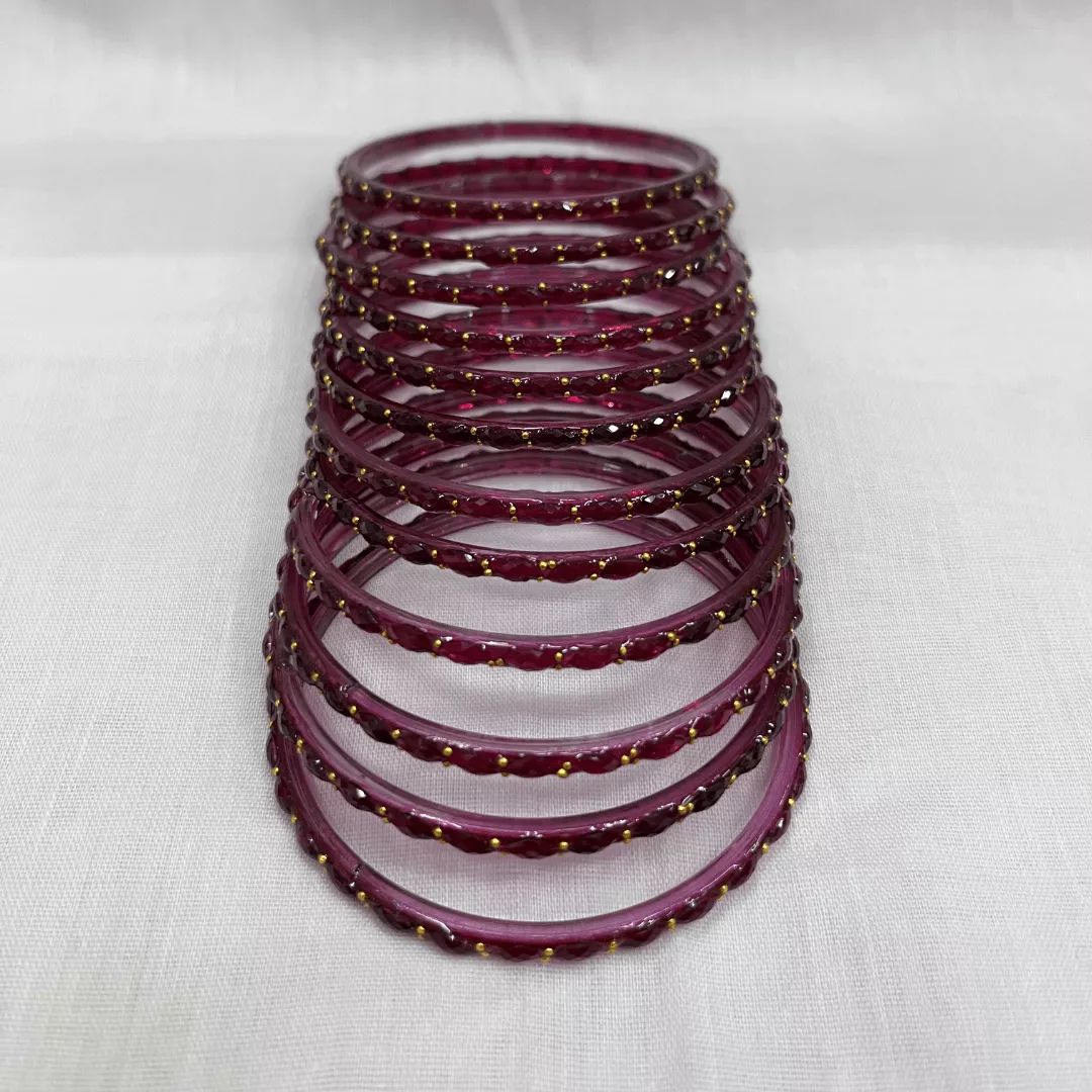Celebrate tradition with a modern twist through this stunning set of Wine glass bangles, beautifully handcrafted to elevate your festive style. Featuring a glossy enamel finish and delicately embellished with golden bead accents, each bangle shines with its own unique charm.