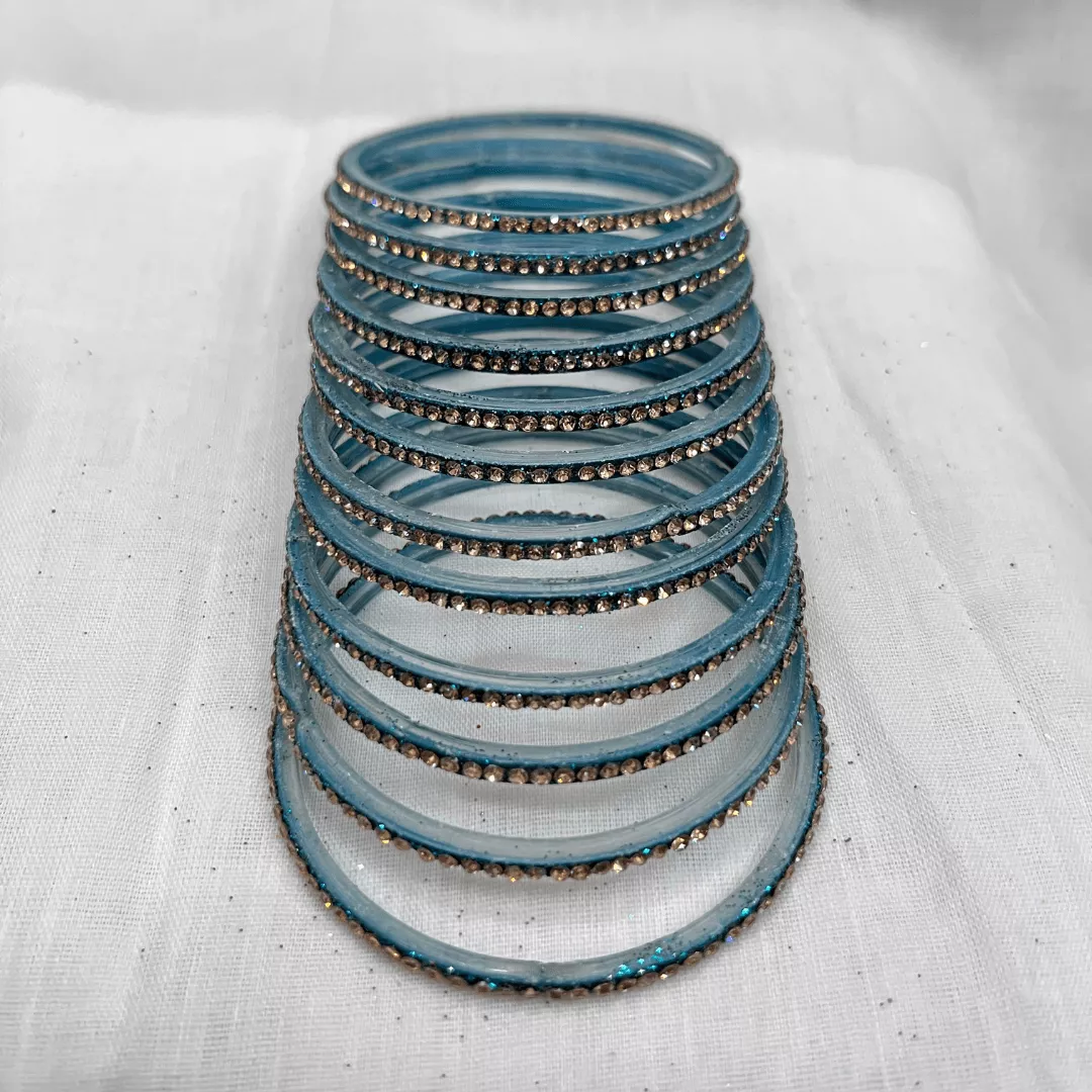 Add a touch of radiant elegance to your festive wardrobe with this stunning set of handcrafted glass bangles in Morpankhi. Designed to dazzle, each bangle is meticulously crafted from premium quality glass and adorned with sparkling stone embellishments that catch the light beautifully from every angle. This set of 12 bangles strikes the perfect balance between traditional charm and modern glamour, making it a must-have for weddings, bridal showers, festivals, and grand celebrations.